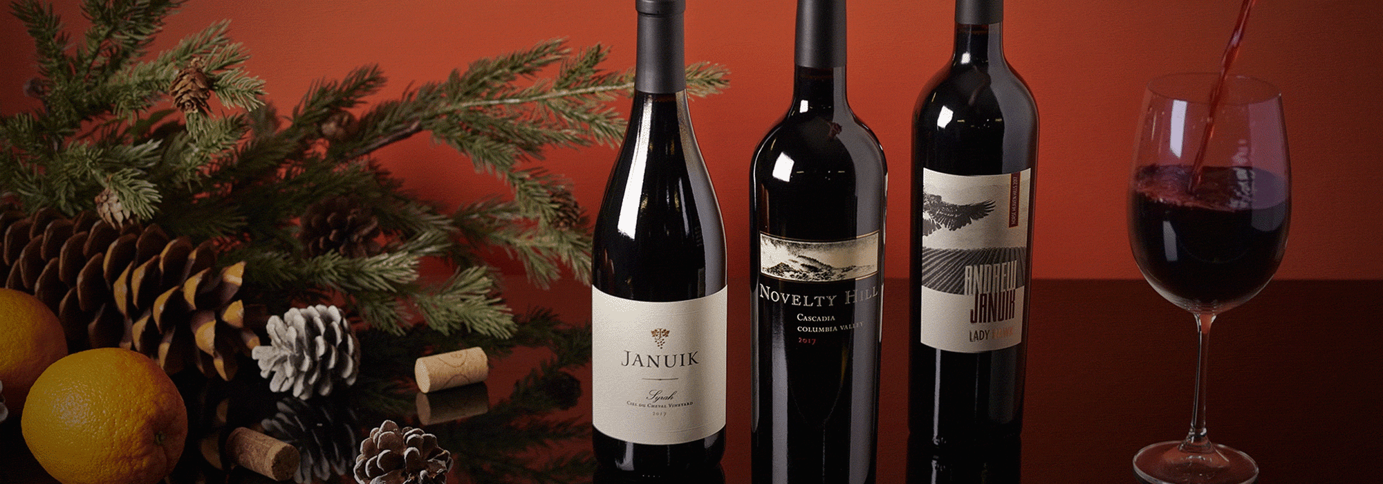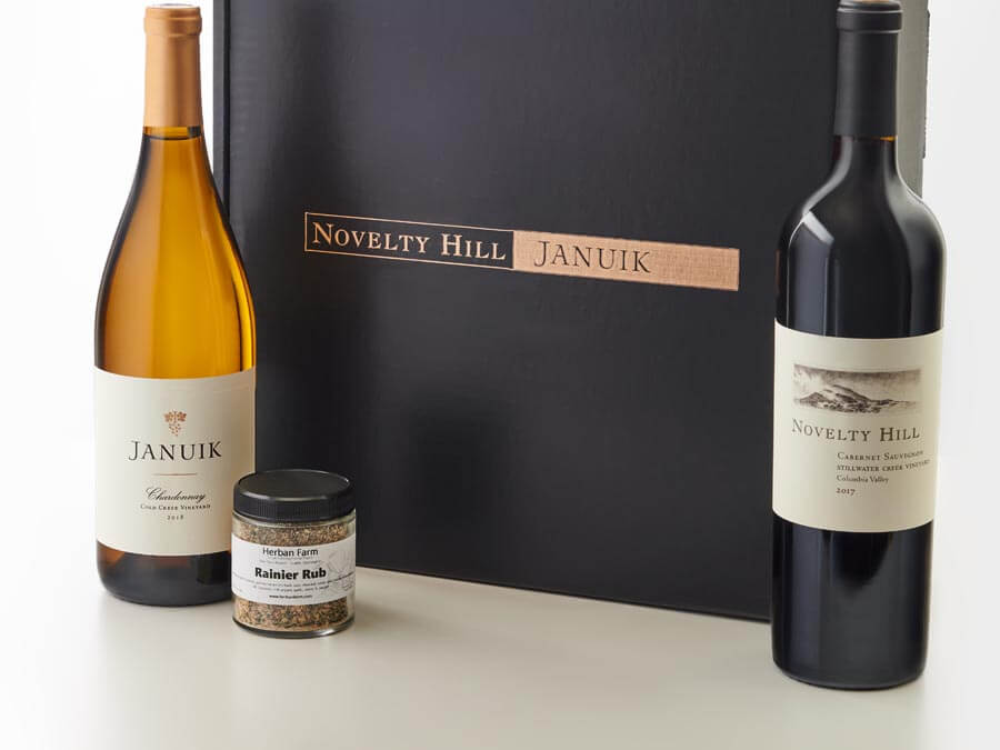 This classic three-bottle set features the 2019 Januik Sagemoor Vineyards Sauvignon Blanc (91 pts), 2017 Novelty Hill Merlot (91 pts) and 2017 Januik Cabernet Sauvignon (91 pts) packed in a gift box with ground shipping and a personalized note from you. $99/set
